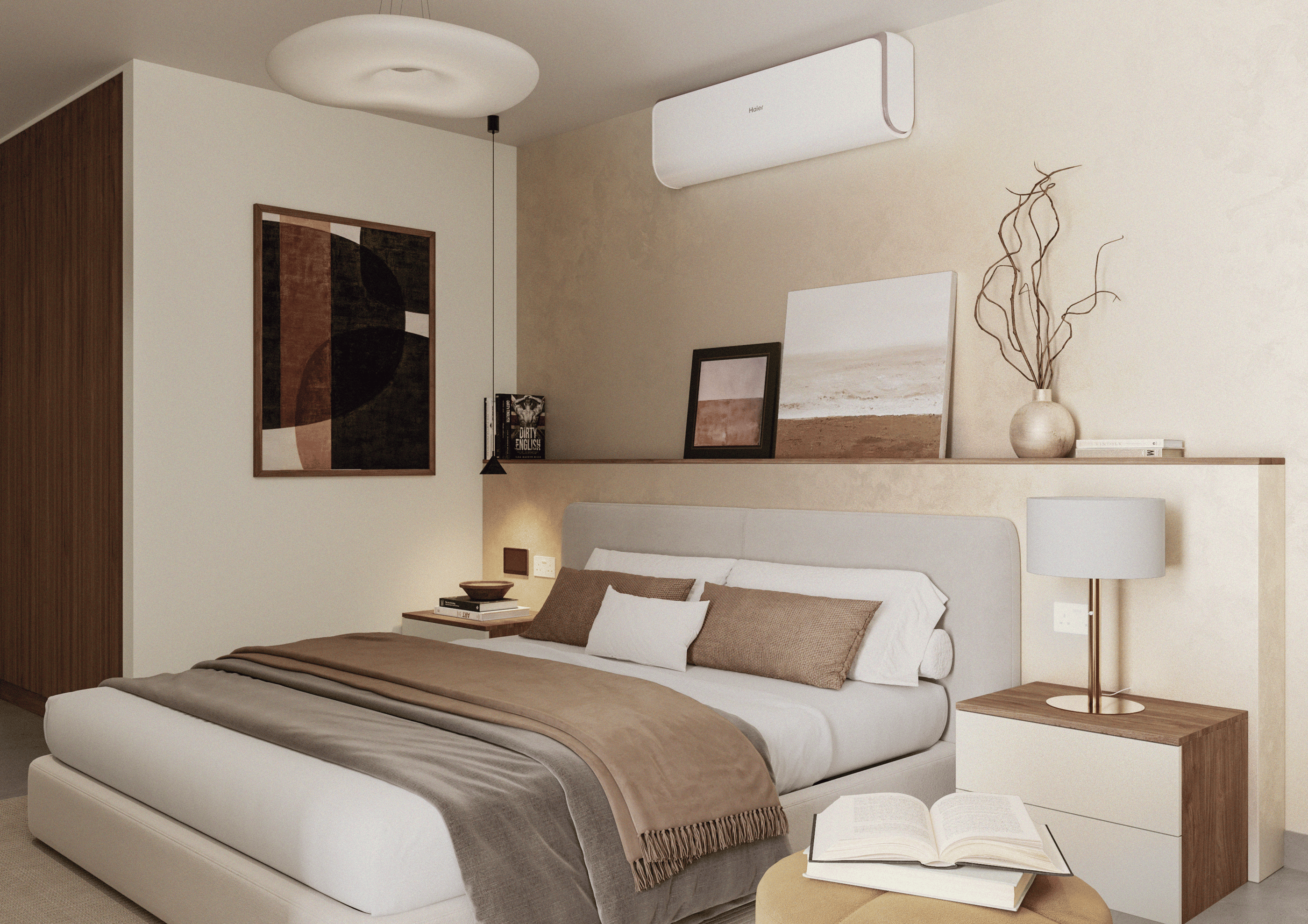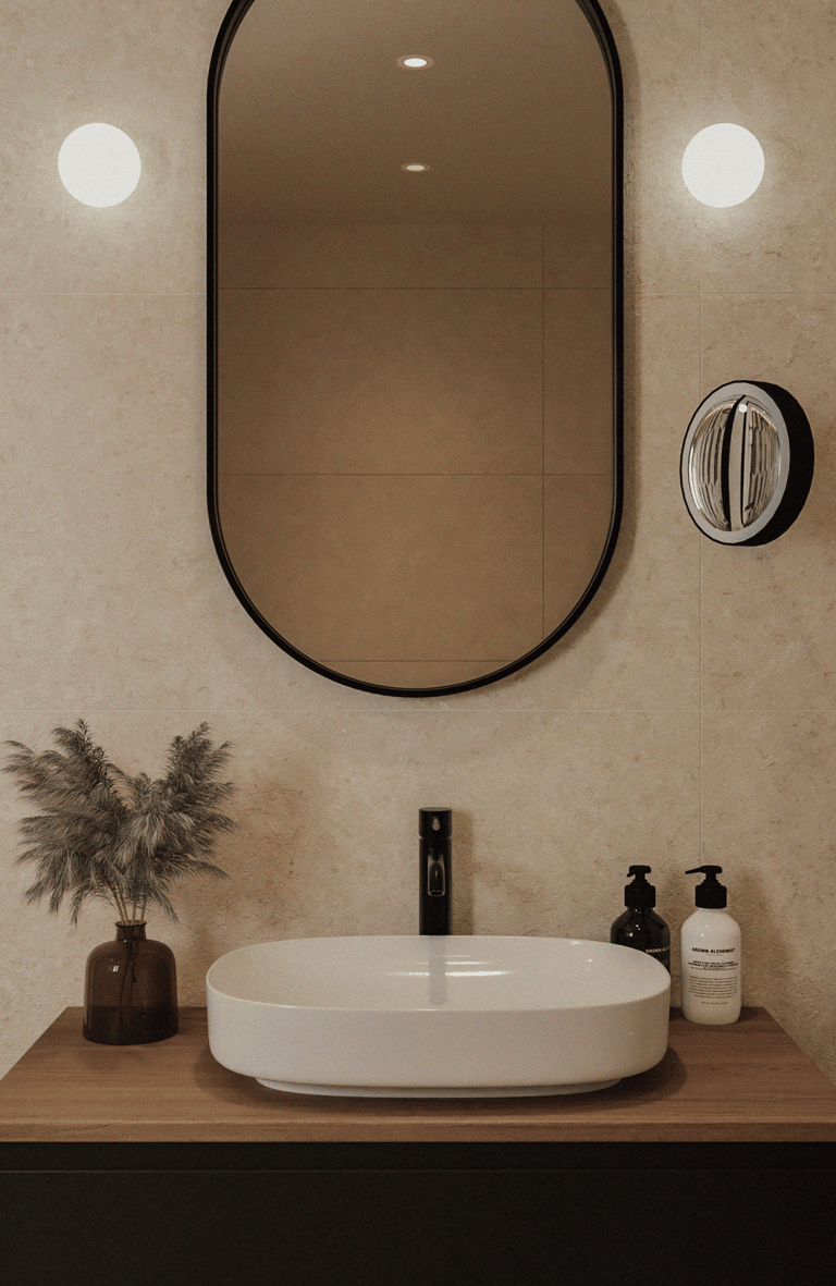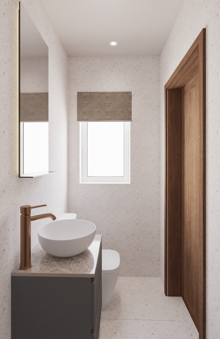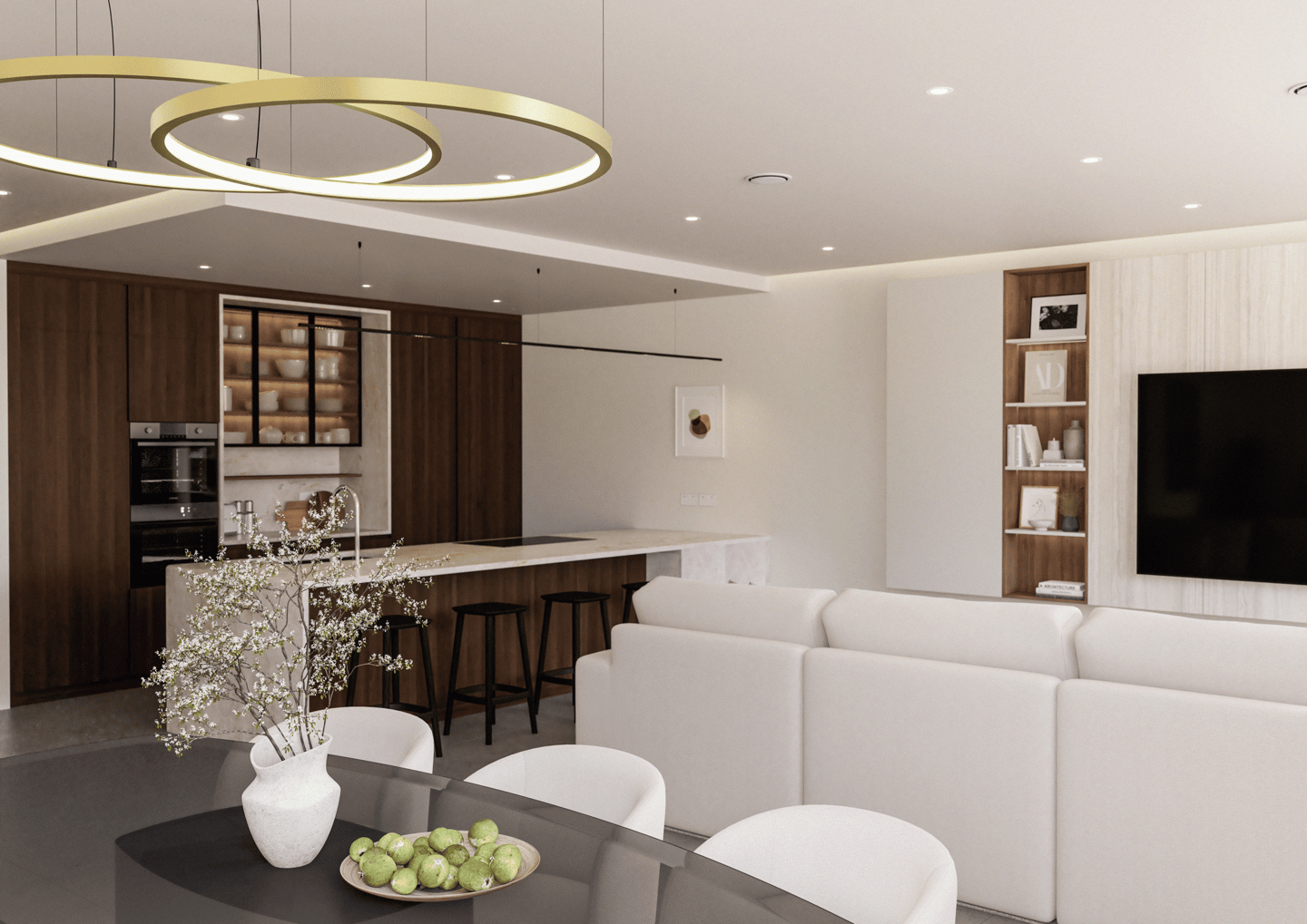 This residential design project in Għargħur, Malta, embraces a harmonious blend of architecture and nature. The maisonette's design respects the contrast between crisp white elements and natural textures, creating a timeless aesthetic. The interior follows a carefully curated palette of neutral tones, where shades of brown, white and grey complement each other to enhance depth and contrast.