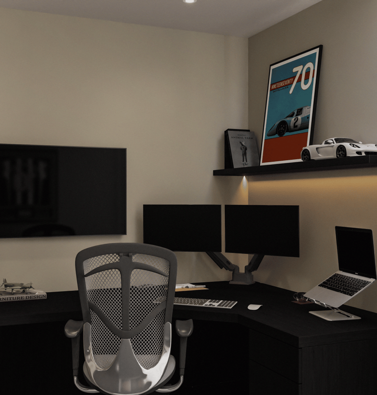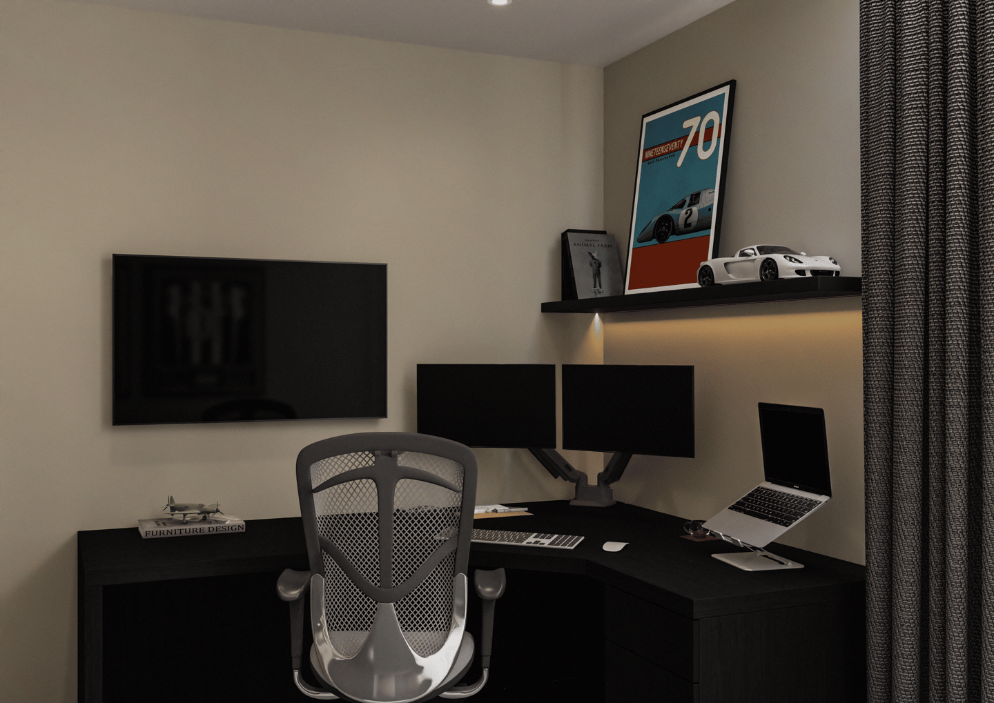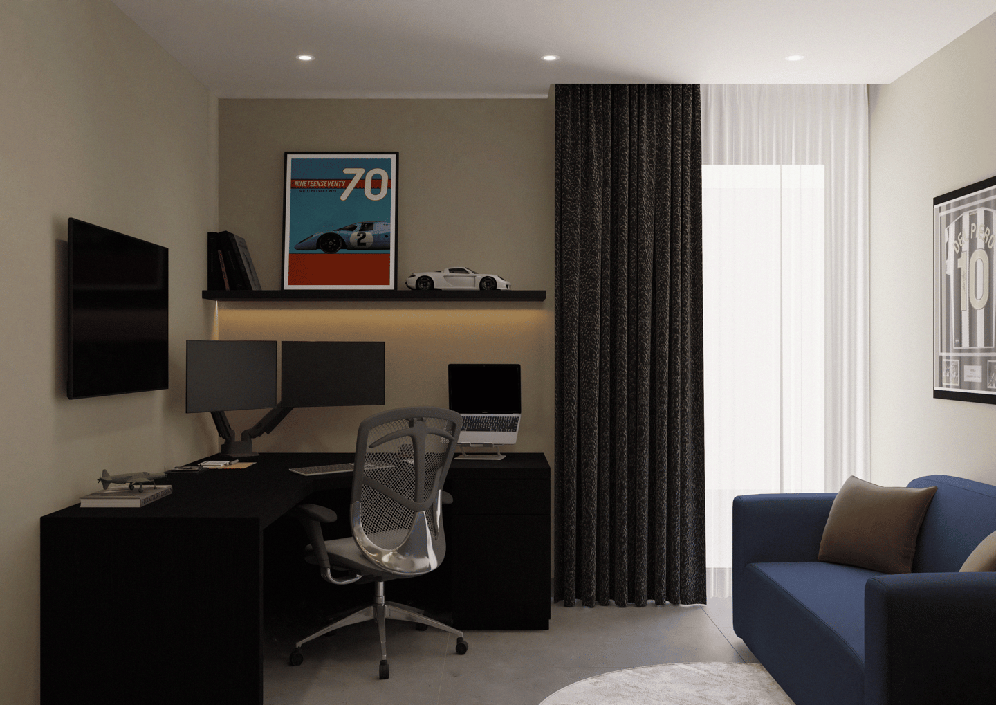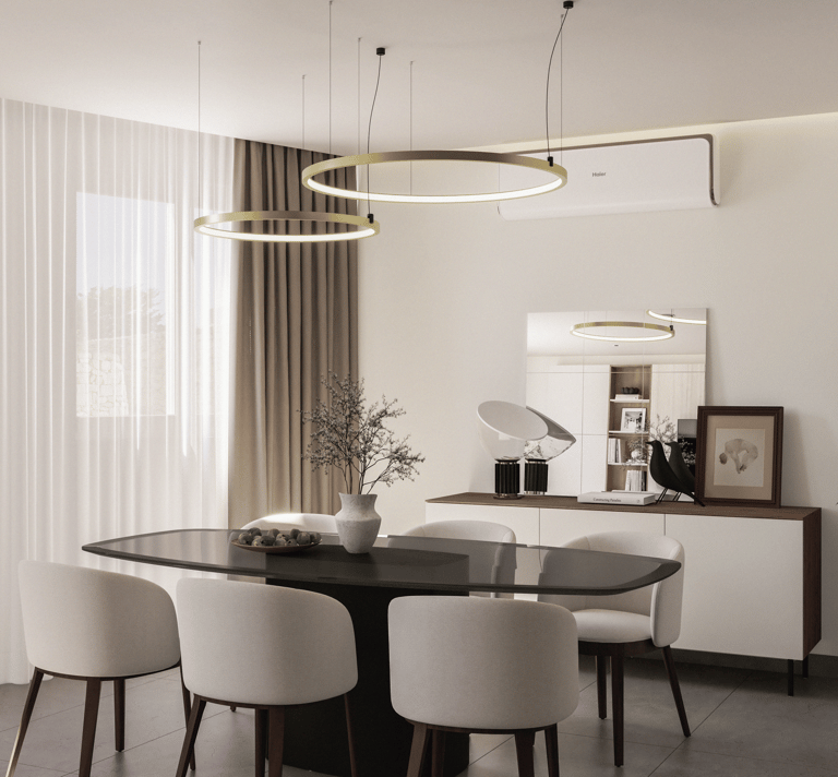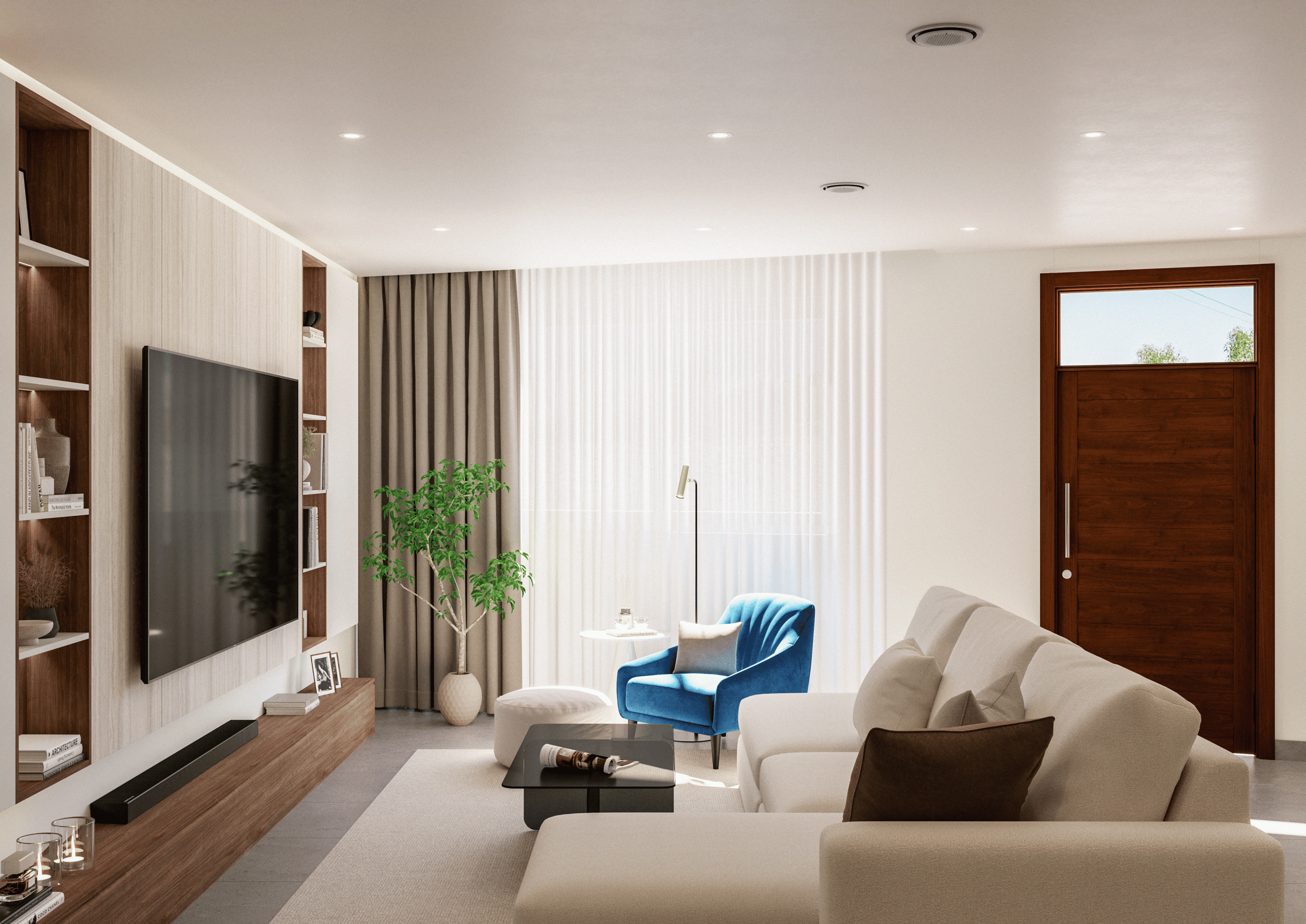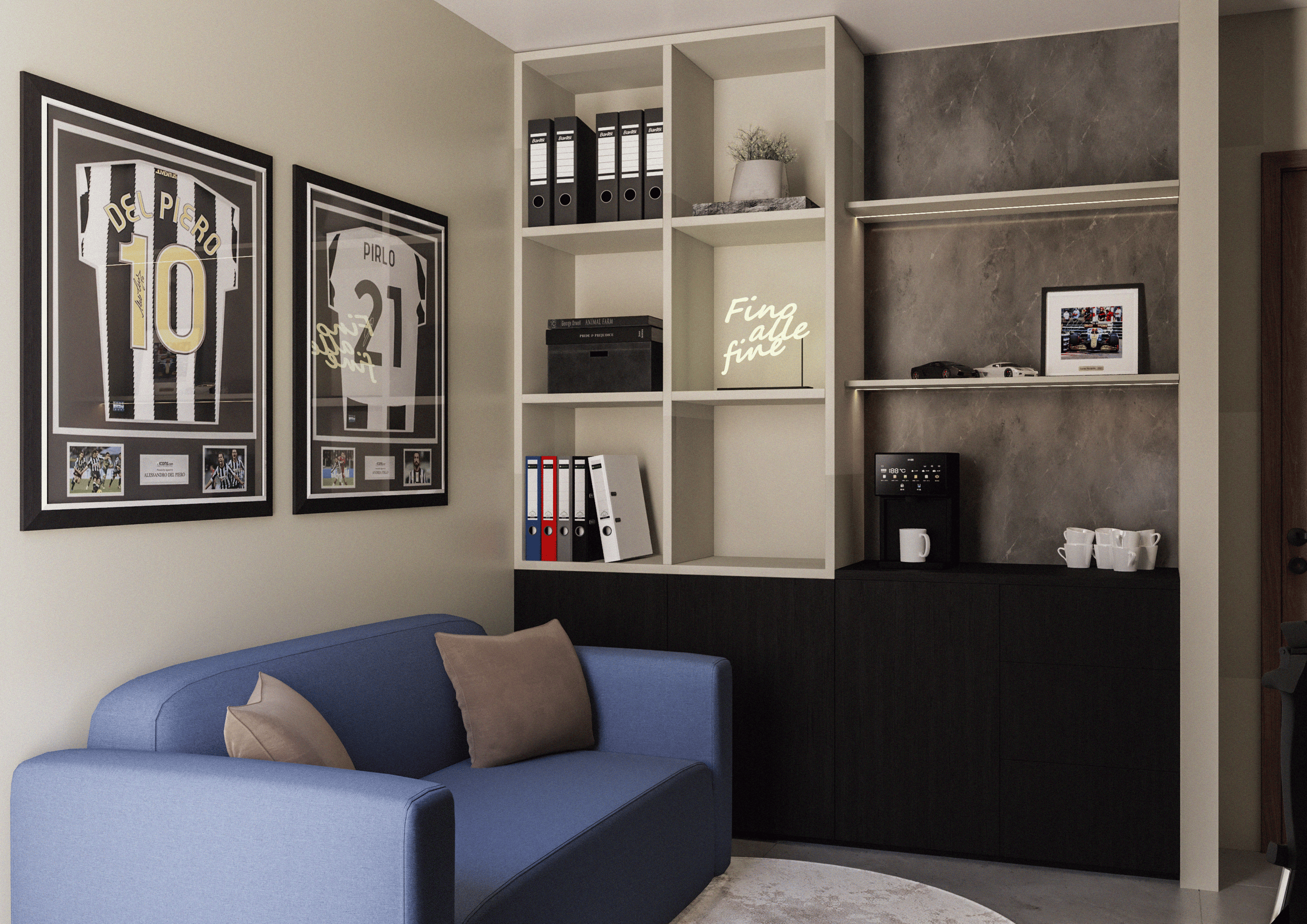Every room maintains a balanced ambiance, reinforcing a sophisticated yet welcoming atmosphere. Attention to detail is evident throughout, from lighting choices to material selection, contributing to a refined and cohesive design. The outdoor garden is a key highlight, designed to achieve both practicality and beauty. A well-balanced selection of vegetation and essential equipment ensures a serene yet functional outdoor space.